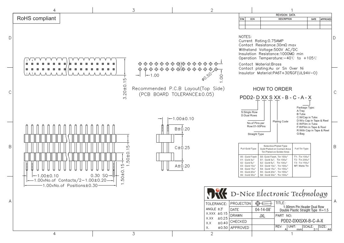 Your location  Home -> Products  ->  Connector  ->  Pin Header  ->  1.0 pitch  ->  1311 PDD2-DXXSXX-B-C-A-X