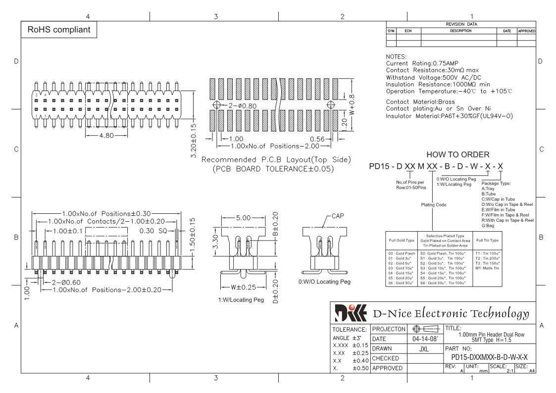 Your location  Home -> Products  ->  Connector  ->  Pin Header  ->  1.0 pitch  ->  1307 PD15-DXXMXX-B-D-W-X-X