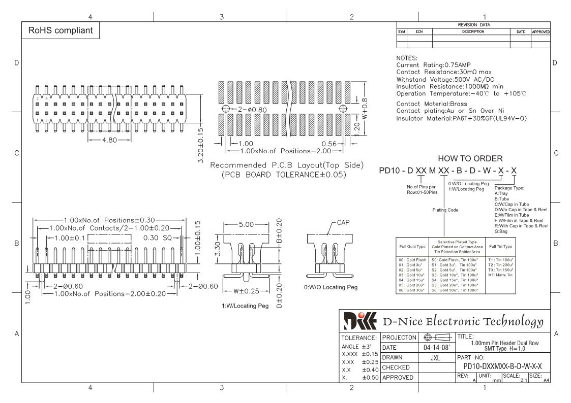 Your location  Home -> Products  ->  Connector  ->  Pin Header  ->  1.0 pitch  ->  1305 PD10-DXXMXX-B-D-W-X-X