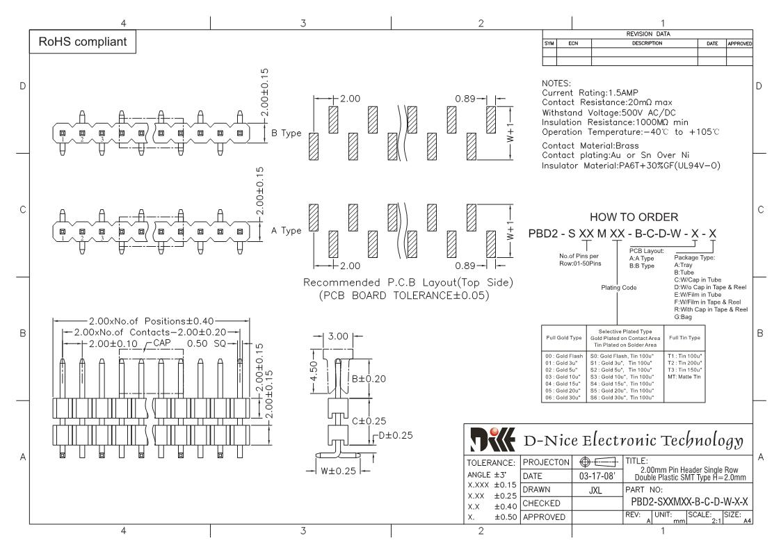 Your location  Home -> Products  ->  Connector  ->  Pin Header  ->  2.0 pitch  ->  1515 PBD2-SXXMXX-B-C-D-W-X-X