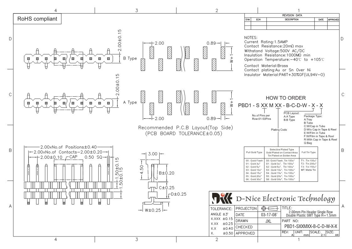 Your location  Home -> Products  ->  Connector  ->  Pin Header  ->  2.0 pitch  ->  1514 PBD1-SXXMXX-B-C-D-W-X-X