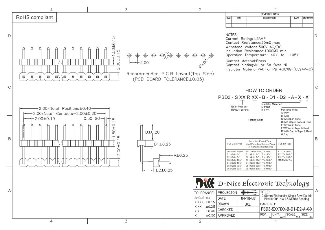 Your location  Home -> Products  ->  Connector  ->  Pin Header  ->  2.0 pitch  ->  1512 PBD3-SXXRXX-B-D1-D2-A-X-X