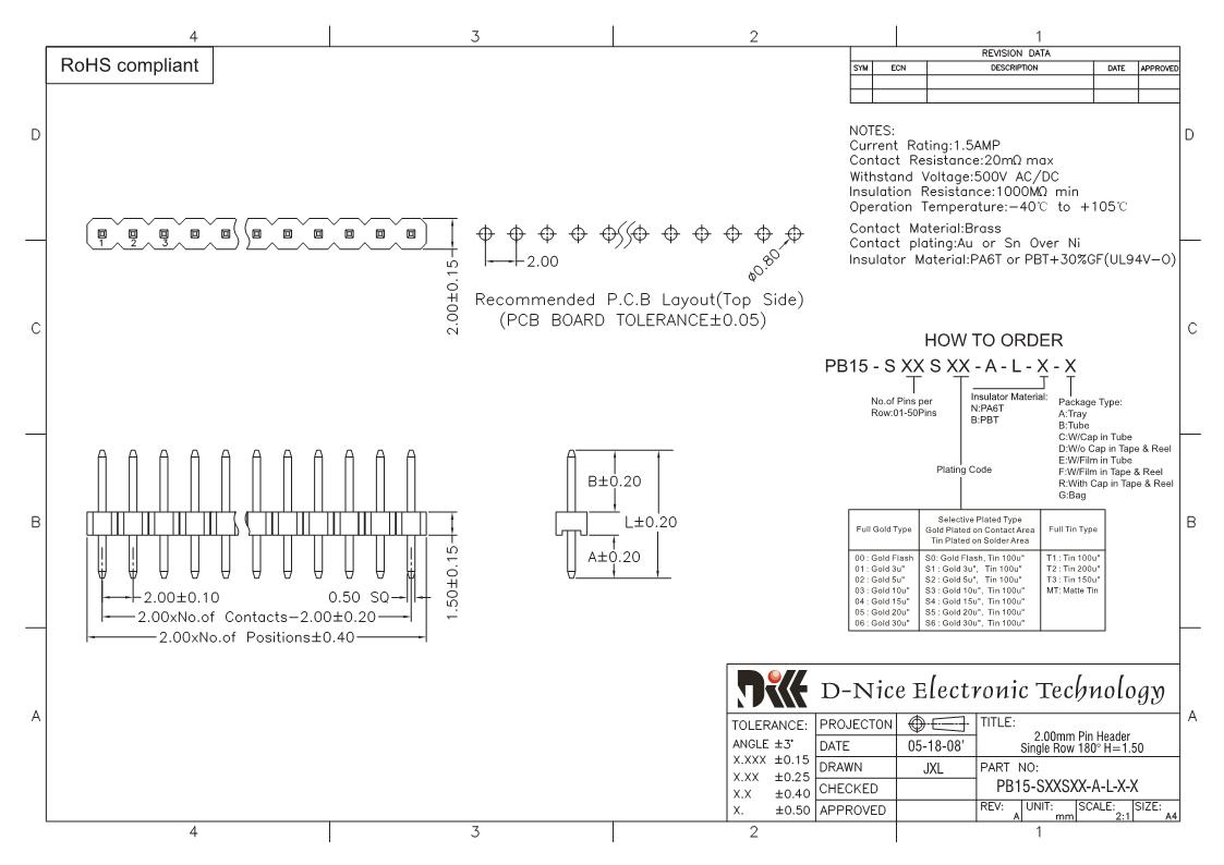 Your location  Home -> Products  ->  Connector  ->  Pin Header  ->  2.0 pitch  ->  1501 PB15-SXXSXX-A-L-X-X