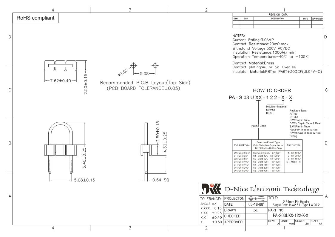 Your location  Home -> Products  ->  Connector  ->  Pin Header  ->  2.54 pitch  ->  1612 PA-S03UXX-122-X-X