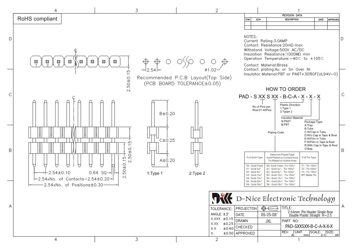 Your location  Home -> Products  ->  Connector  ->  Pin Header  ->  2.54 pitch  ->  1609 PAD-SXXSXX-B-C-A-X-X-X