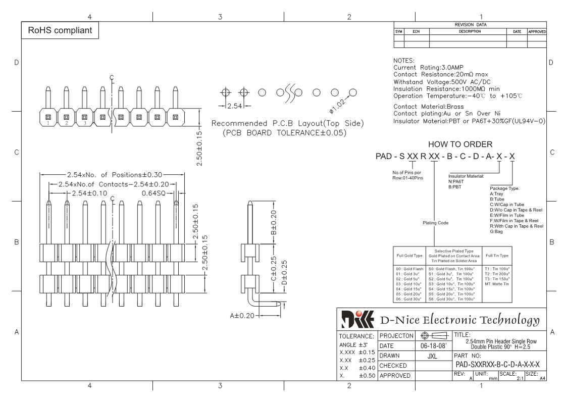 Your location  Home -> Products  ->  Connector  ->  Pin Header  ->  2.54 pitch  ->  1607 PAD-SXXRXX-B-C-D-A-X-X-X