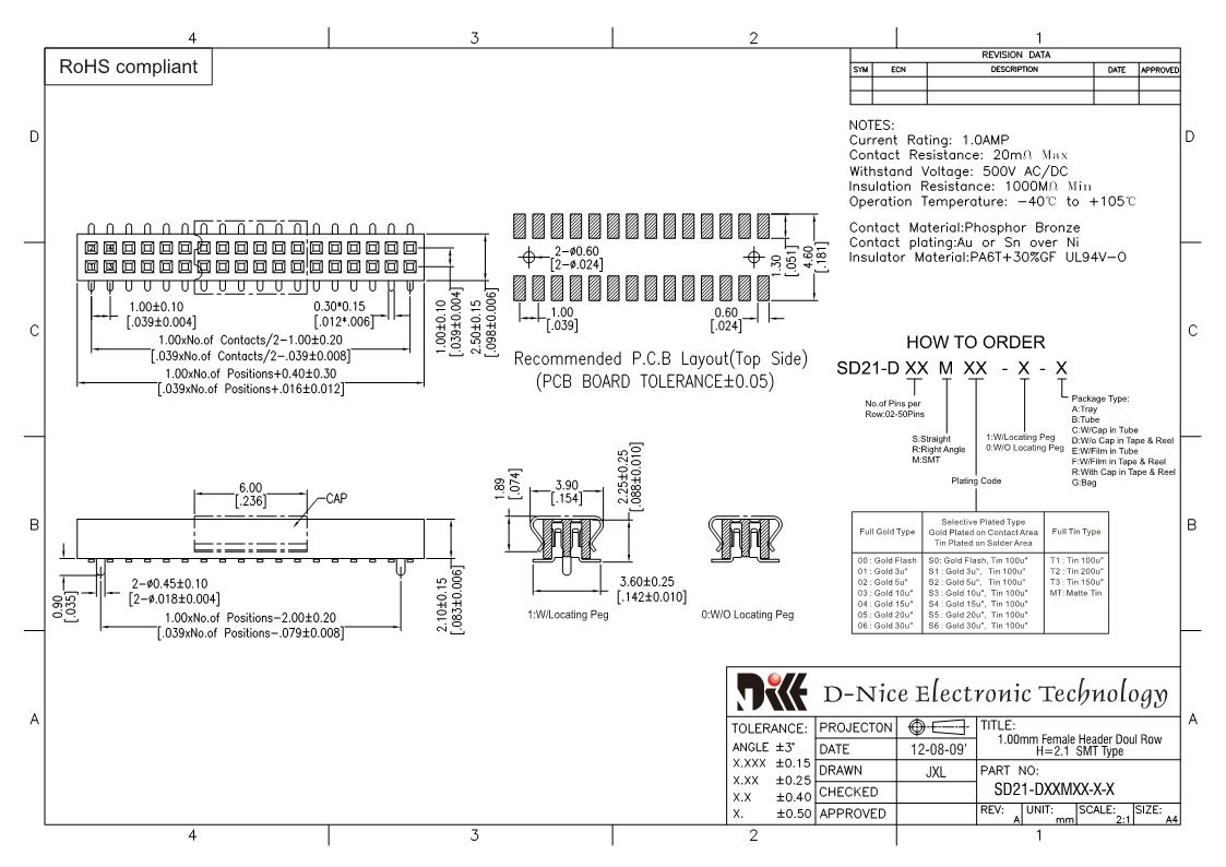 Your location  Home -> Products  ->  Connector  ->  Female header  ->  1.0 pitch  ->  2201 SD21-DXXMXX-X-X