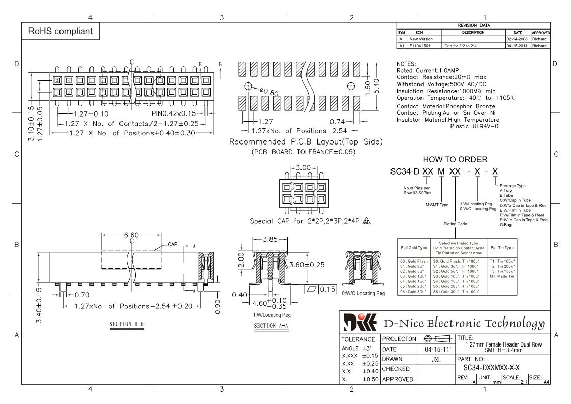 Your location  Home -> Products  ->  Connector  ->  Female header  ->  1.27 pitch  ->  2311 SC34-DXXMXX-X-X