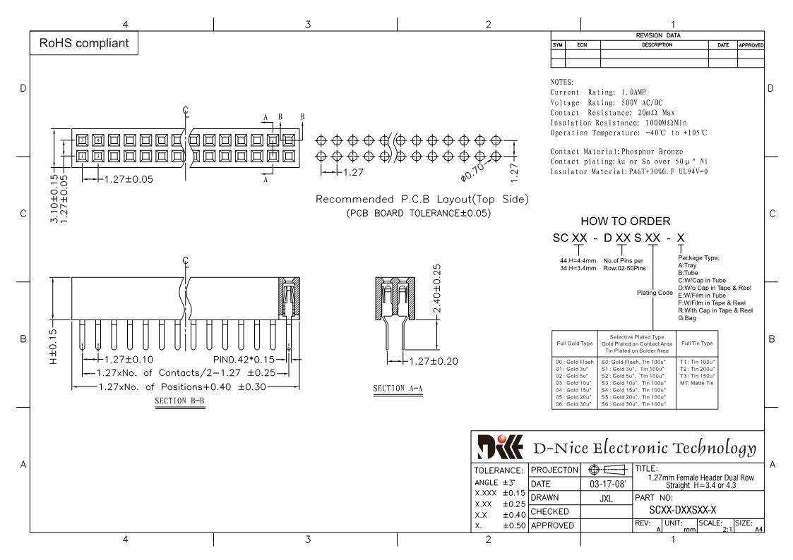 Your location  Home -> Products  ->  Connector  ->  Female header  ->  1.27 pitch  ->  2310 SCXX-DXXSXX-X