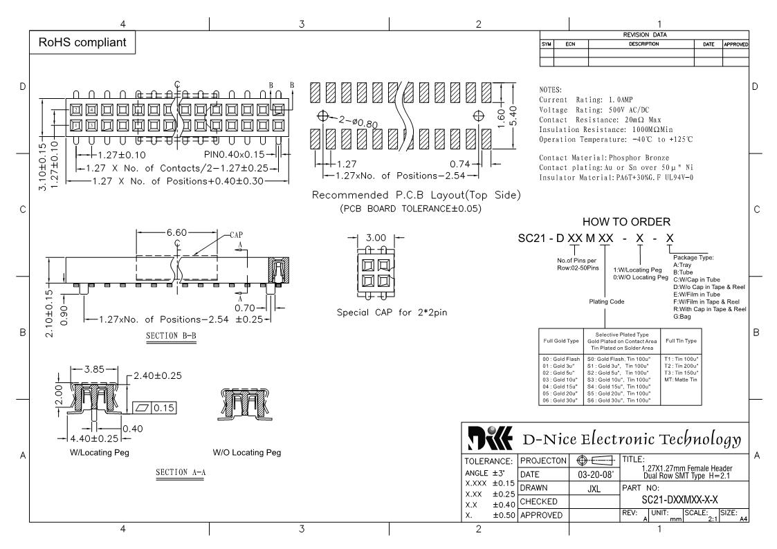 Your location  Home -> Products  ->  Connector  ->  Female header  ->  1.27 pitch  ->  2309 SC21-DXXMXX-X-X