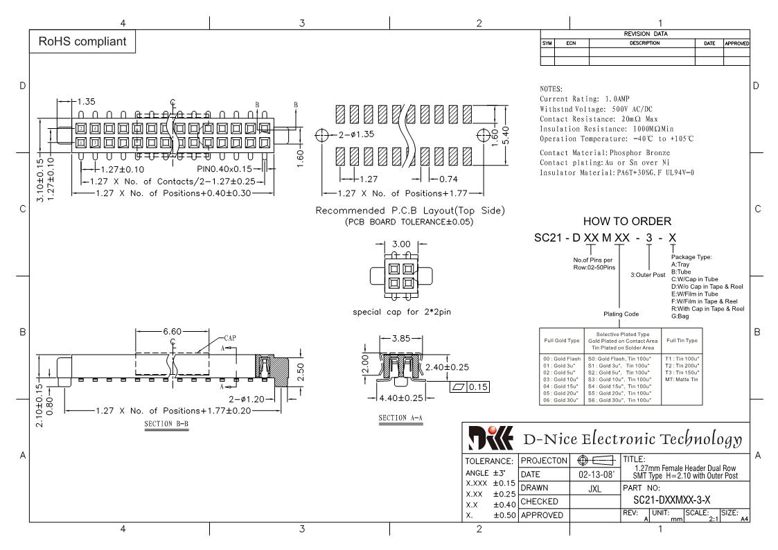 Your location  Home -> Products  ->  Connector  ->  Female header  ->  1.27 pitch  ->  2308 SC21-DXXMXX-3-X