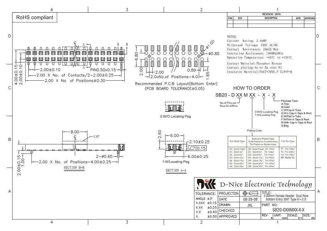Your location  Home -> Products  ->  Connector  ->  Female header  ->  2.0 pitch  ->  2402 SB20-DXXMXX-X-X