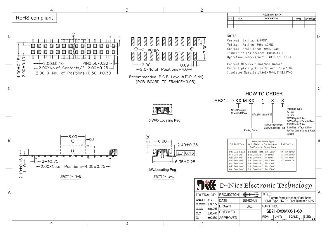 Your location  Home -> Products  ->  Connector  ->  Female header  ->  2.0 pitch  ->  2401 SB21-DXXMXX-1-X-X