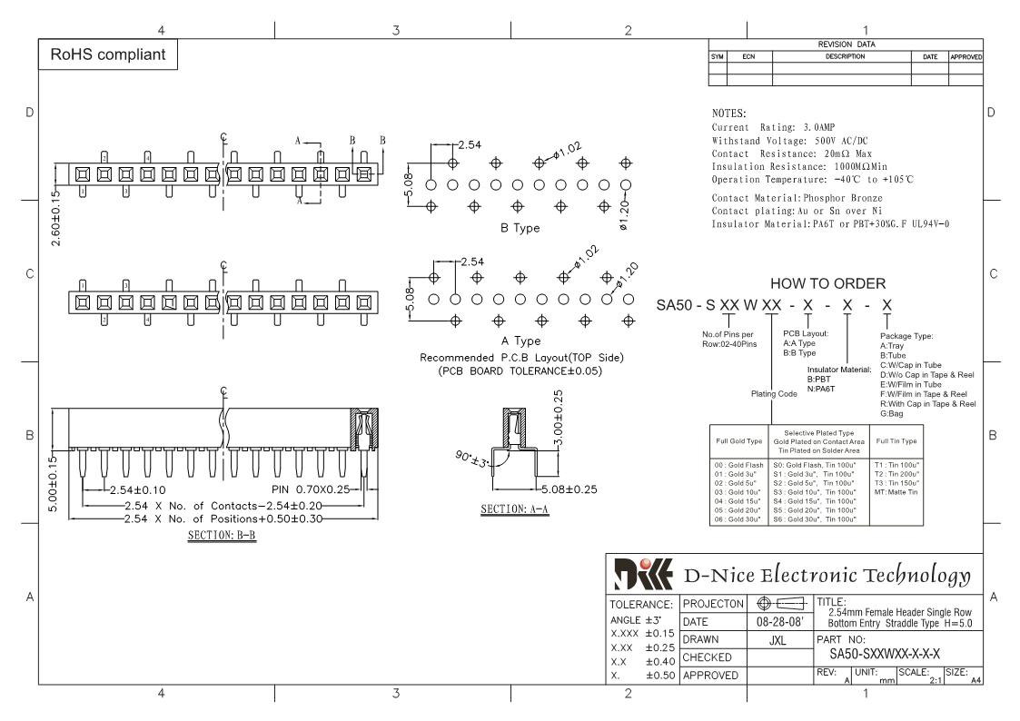 Your location  Home -> Products  ->  Connector  ->  Female header  ->  2.54 pitch  ->  2515 SA50-SXXWXX-X-X-X