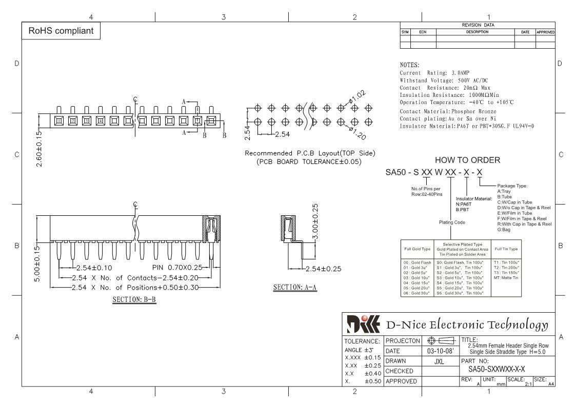 Your location  Home -> Products  ->  Connector  ->  Female header  ->  2.54 pitch  ->  2514 SA50-SXXWXX-X-X