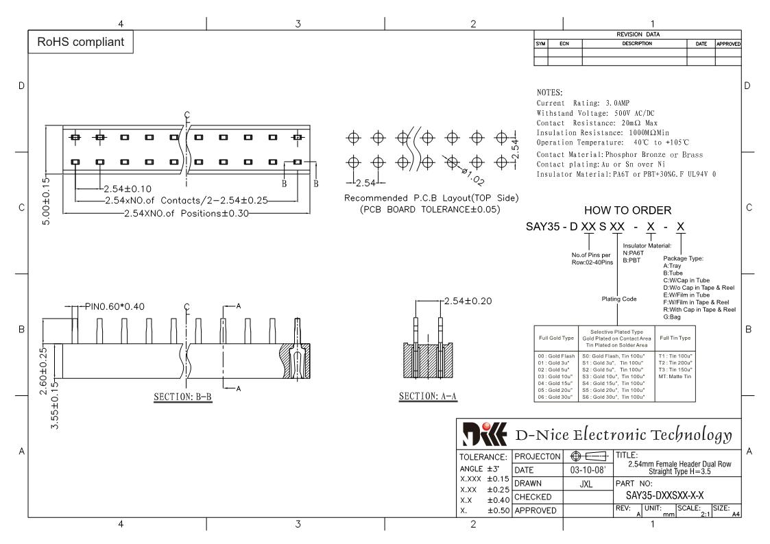 Your location  Home -> Products  ->  Connector  ->  Female header  ->  2.54 pitch  ->  2511 SAY35-DXXSXX-X-X
